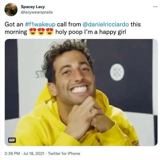 All 20 drivers recorded wake up messages, which, with some added spice, we mixed into longer messages encouraging fans to get out of bed and watch the race live on F1TV or ESPN.