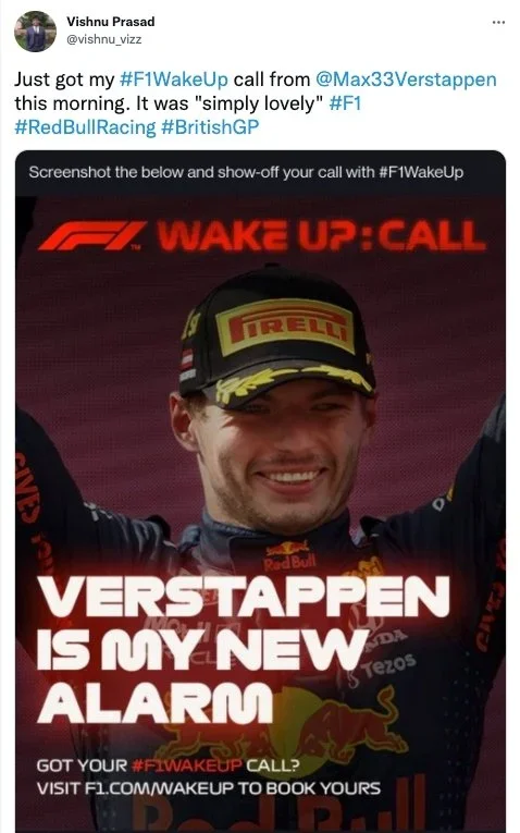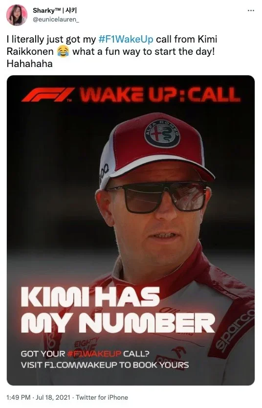 Allowing fans to request a wake up call - an actual phone call β from their favourite F1 driver, to ensure they donβt miss the start of the race.
